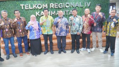 BALIKPAPAN, BorneoPost – Menyikapi serius terkait pemenuhan infrastruktur jaringan telekomunikasi di Bumi Batiwakkal. Wakil Bupati Berau, Gamalis, bertandang langsung ke Kantor Telkom Regional IV Kalimantan di Balikpapan, Kamis (16/4/2026). Disertai Ketua DPRD Berau, Dedy Okto Nooryanto, Asisten III, Maulidiyah dan Kepala Dinas Komunikasi dan Informasi, Didi Rahmadi, Gamalis beraudensi dengan EVP Telkom, Irwan Andrianto Nugroho, bersama jajarannya.