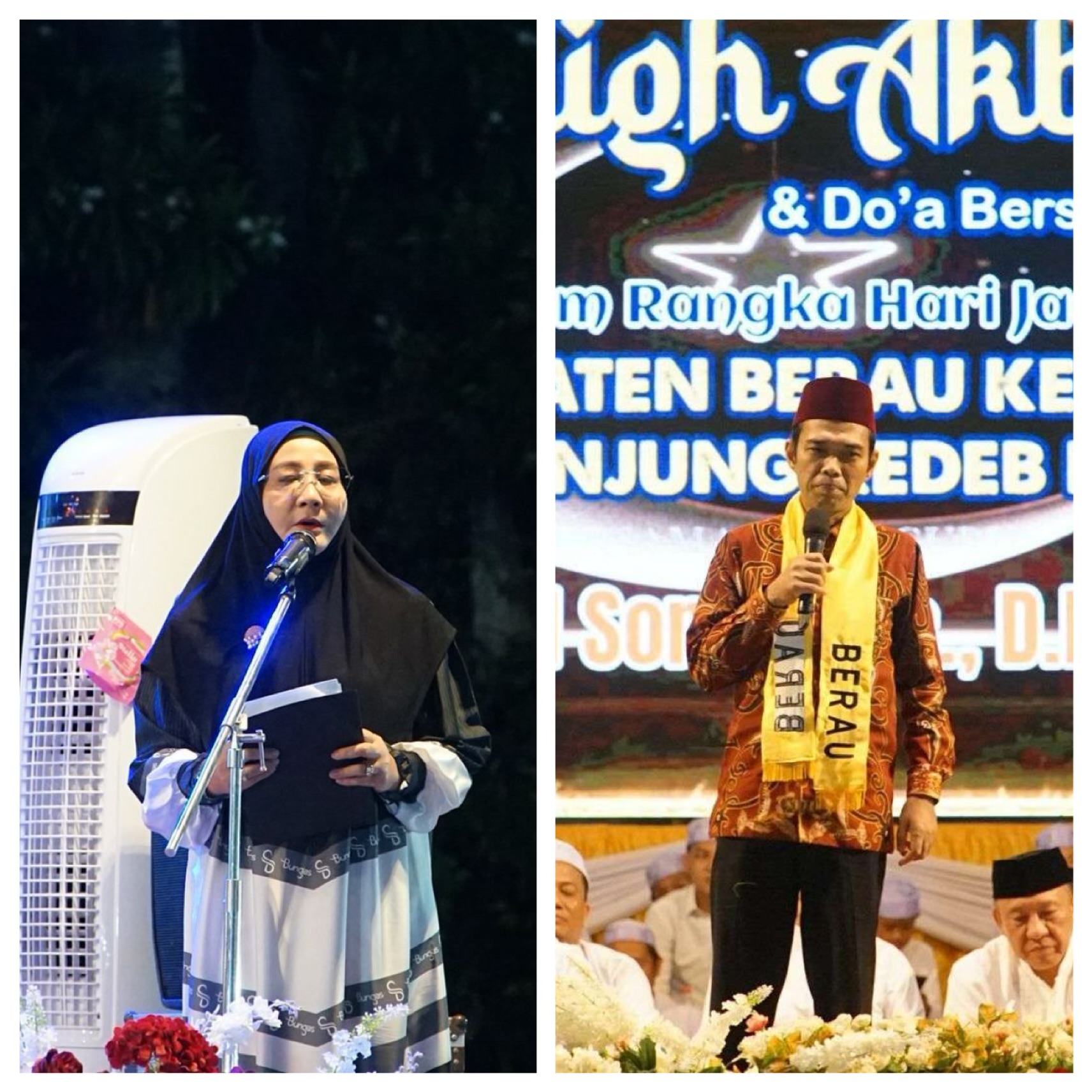 Bupati Berau, Sri Juniarsih Mas, menyampaikan penghargaan dan rasa syukurnya atas kehadiran UAS yang untuk kedua kalinya bertandang ke Bumi Batiwakkal. Ia menilai kehadiran dai kondang itu membawa energi positif dan memperkuat jalinan ukhuwah Islamiah di tengah masyarakat.