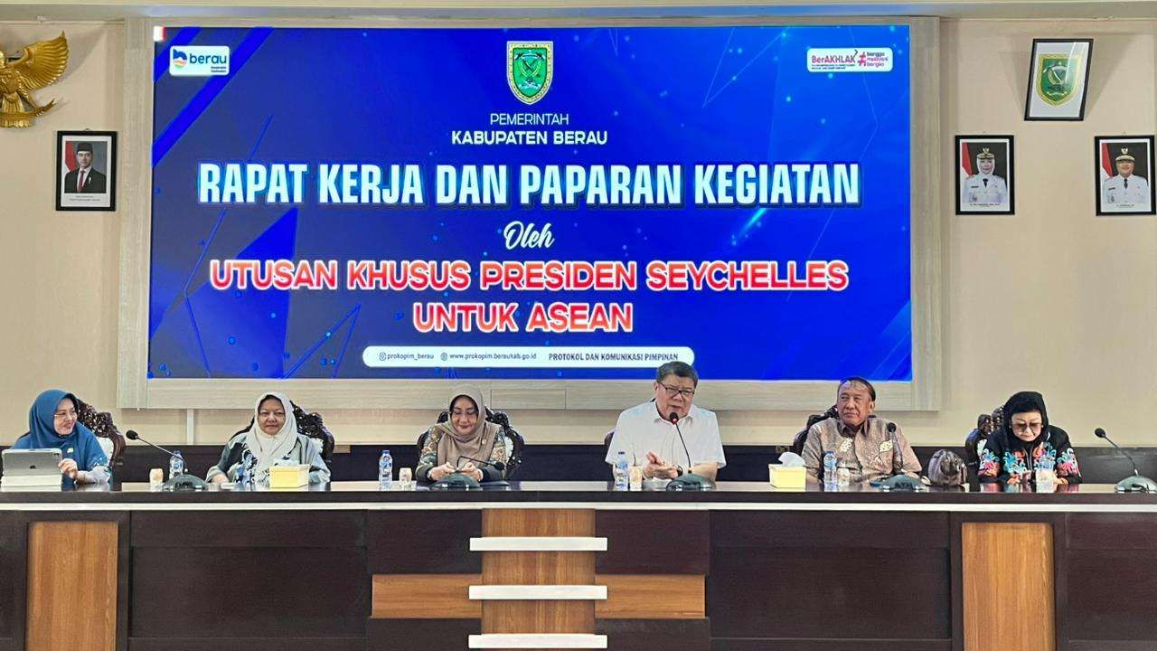 Berau, BorneoPost – Pemerintah Kabupaten Berau menerima kunjungan Utusan Khusus Presiden Seychelles untuk ASEAN, Nico Barito, dalam agenda rapat kerja dan paparan program pengembangan ekonomi biru, Jumat (31/10/2025) kemarin, di Ruang Sangalakki, Kantor Bupati Berau. Pertemuan itu menjadi momentum penting memperkuat jejaring kerja sama internasional guna mendorong pembangunan sektor kelautan dan pariwisata berkelanjutan di Bumi Batiwakkal.