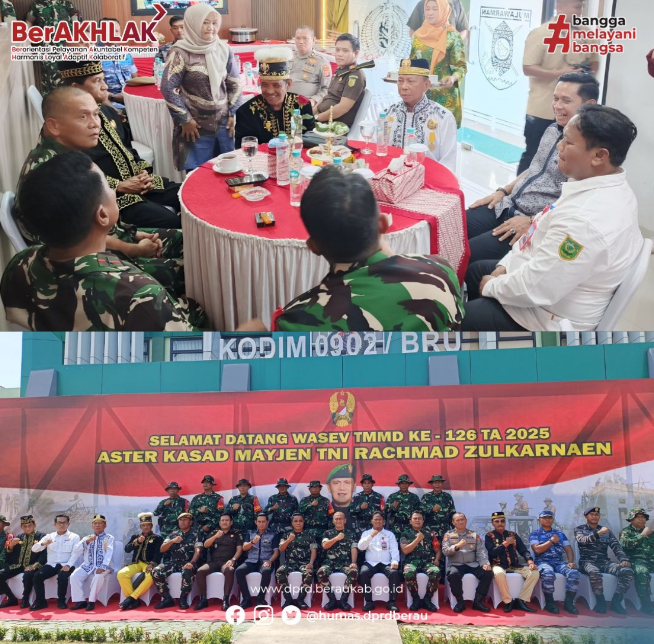 BERAU, BorneoPost – Ketua Dewan Perwakilan Rakyat Daerah (DPRD) Kabupaten Berau, Dedy Okto Nooryanto, menyambut langsung kedatangan Wakil Asisten Teritorial Kepala Staf Angkatan Darat (Waasiter KASAD) Bidang Pengawasan dan Evaluasi (Wasev) TMMD ke-126, Mayjen TNI Rachmad Zulkarnaen, di Markas Kodim 0902/Berau, Rabu (22/10/2025) lalu.