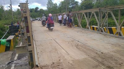 “Melihat, penyebab ambruknya jembatan itu dikarenakan banjin dan debit air pasang.Kami sudah usulkan ke pusat, sesegera mungkin akan ditangani secara permanent,” pungkasnya.