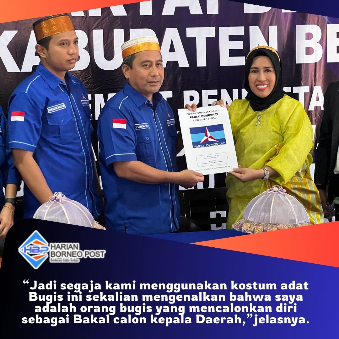 TANJUNG REDEB, Borneo Post – Dengan mengunakan kostum adat Bugis, Bakal Calon bupati Berau, Marhana, Bersama rombongan mengambil formulir pendaftaran Calon Kepala Daerah di sekertariat Dewan Pimpinan Cabang (DPC) Partai Demokrat Berau. Jumat (5/4/2024).
