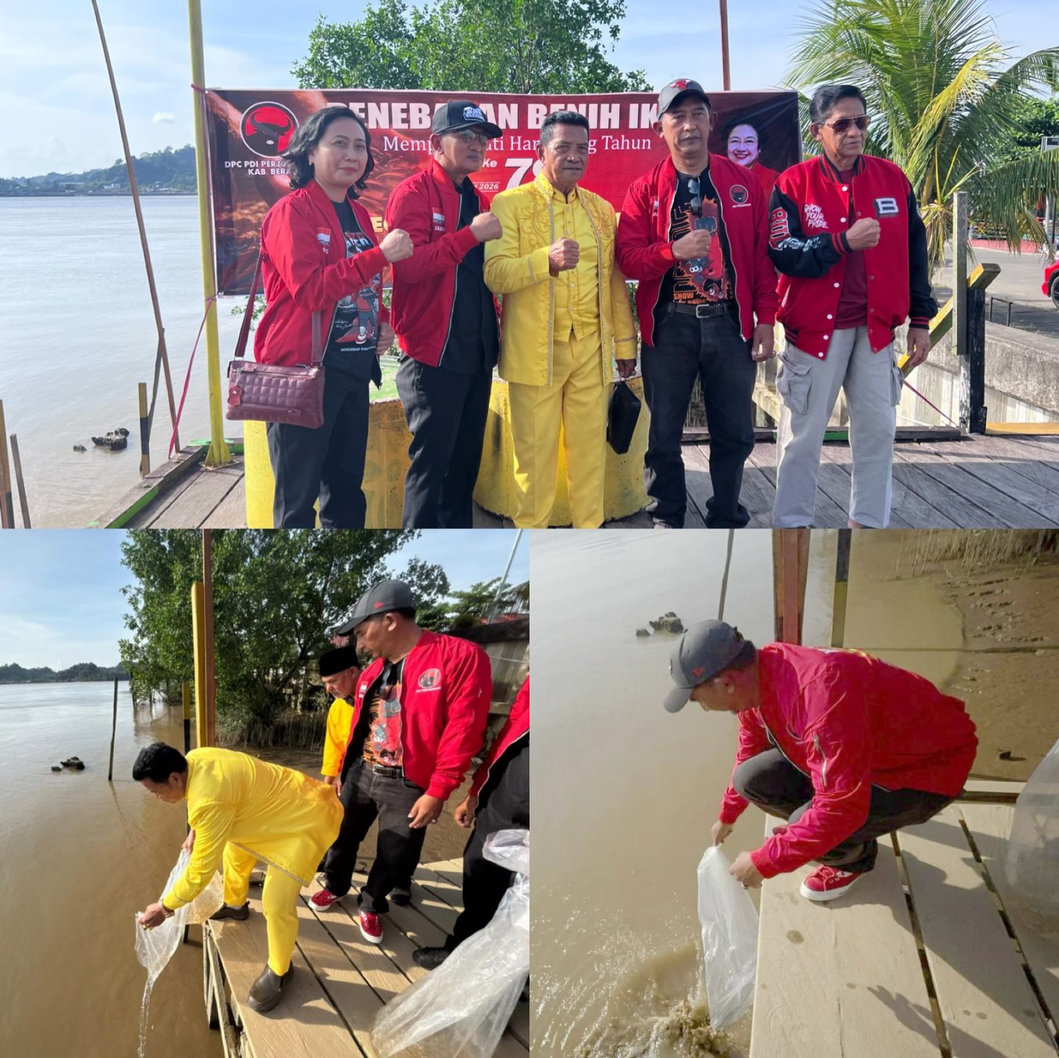 BERAU, BorneoPost – Dalam rangka memperingati hari ulang tahun ke-79 Ketua Umum PDI Perjuangan, Prof. (H.C) Hj. Megawati Soekarnoputri, DPC PDI-P Kabupaten Berau menggandeng Kesultanan Sambaliung menggelar aksi penebaran 7.900 benih ikan di Sungai Berau, tepatnya di Dermaga Kesultanan Sambaliung, Jumat (23/1-1016).